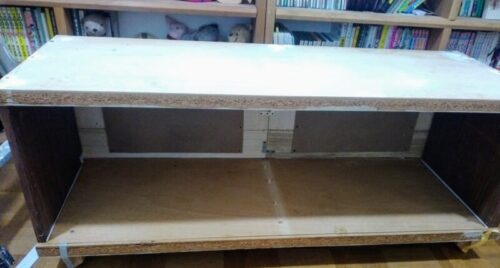 このテレビ台は他の家具と違ってちょっと手が込んでいるのですが、リメイク案の一つとして参考になさってみてください。